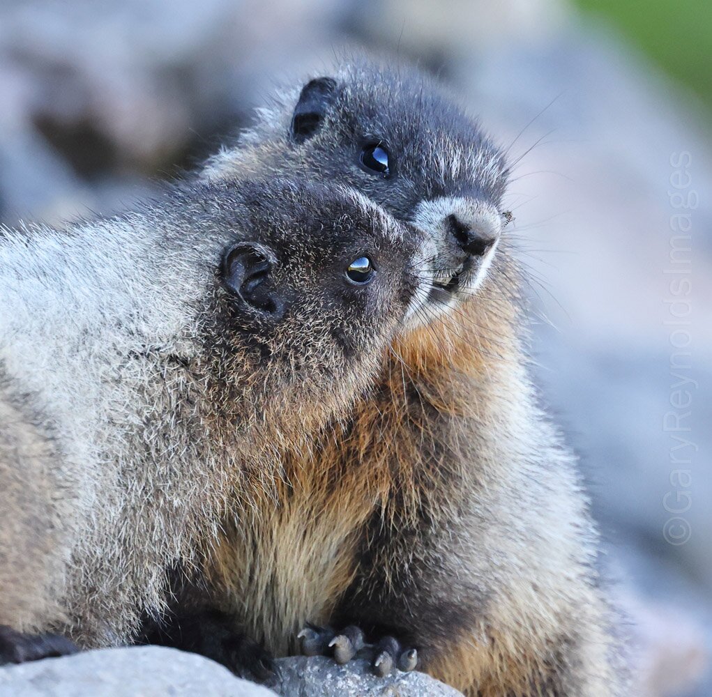 Just up from Pika Alley, a group of four marmot pups bound about... and are curious enough to come close.