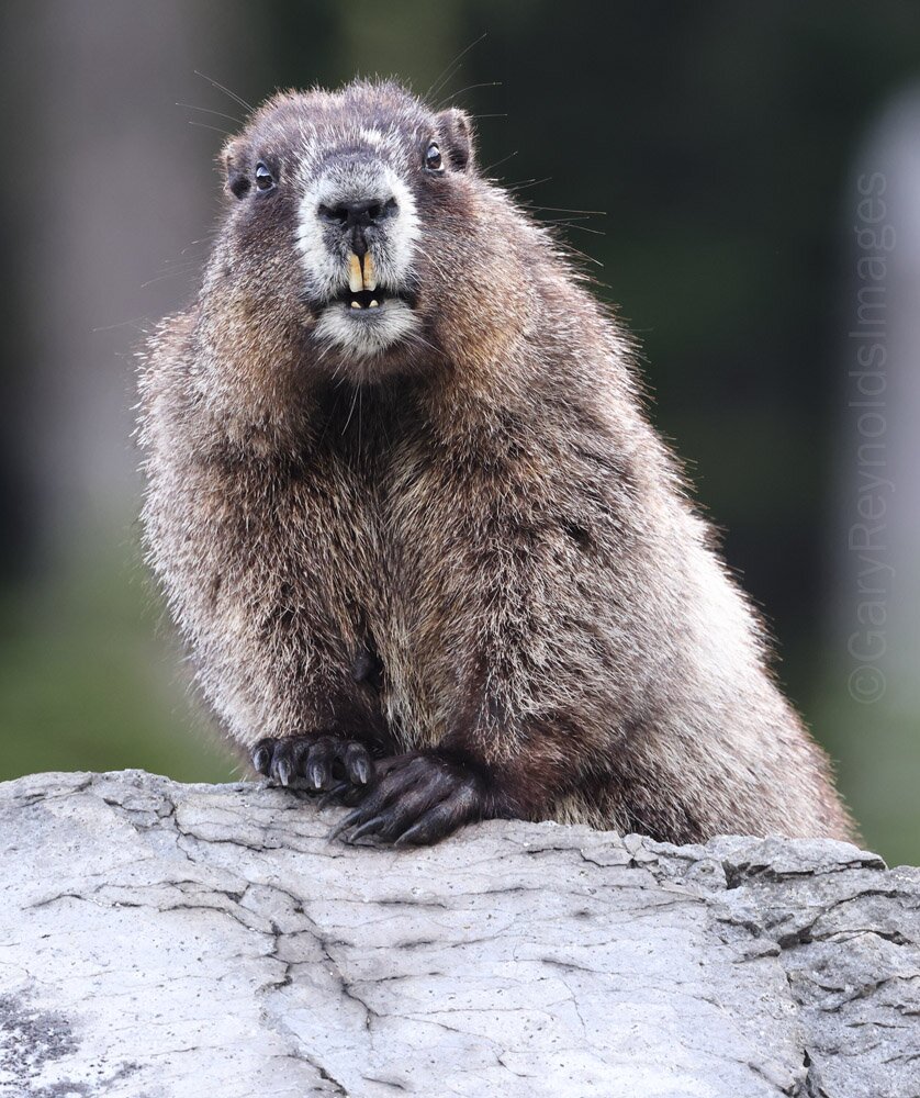 Marmot dad is on the rocks above us, making repeated calls to the family below.