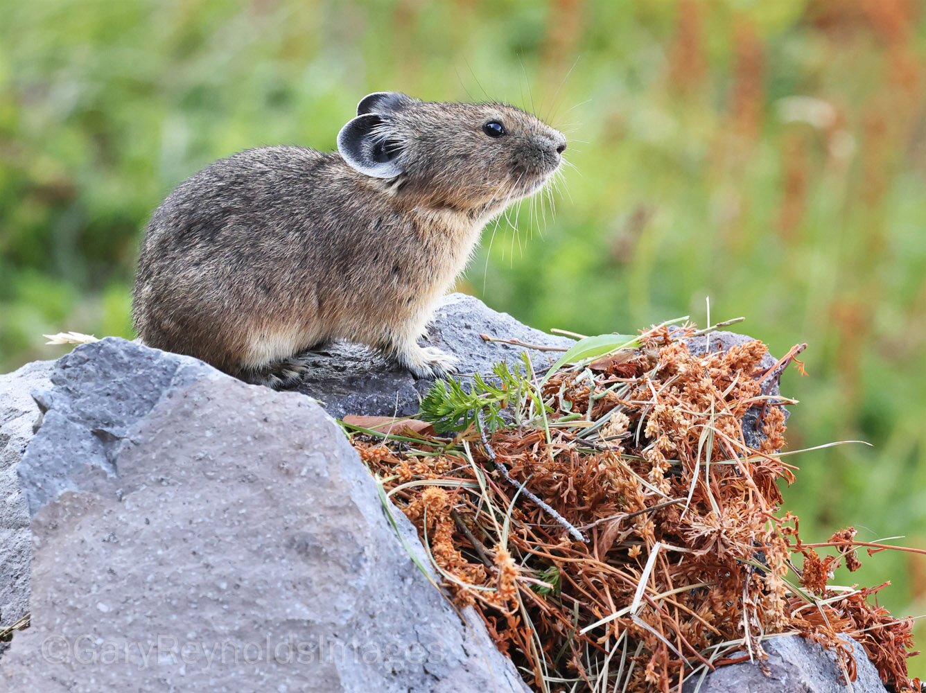Downslope, another runs back and forth with mouthfuls for flowers to add to the haypile...