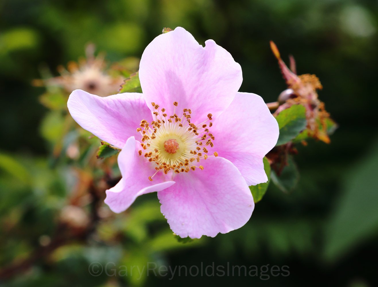 Nootka Rose (Rosa nutkana) blooms near the Cape Disappointment light.