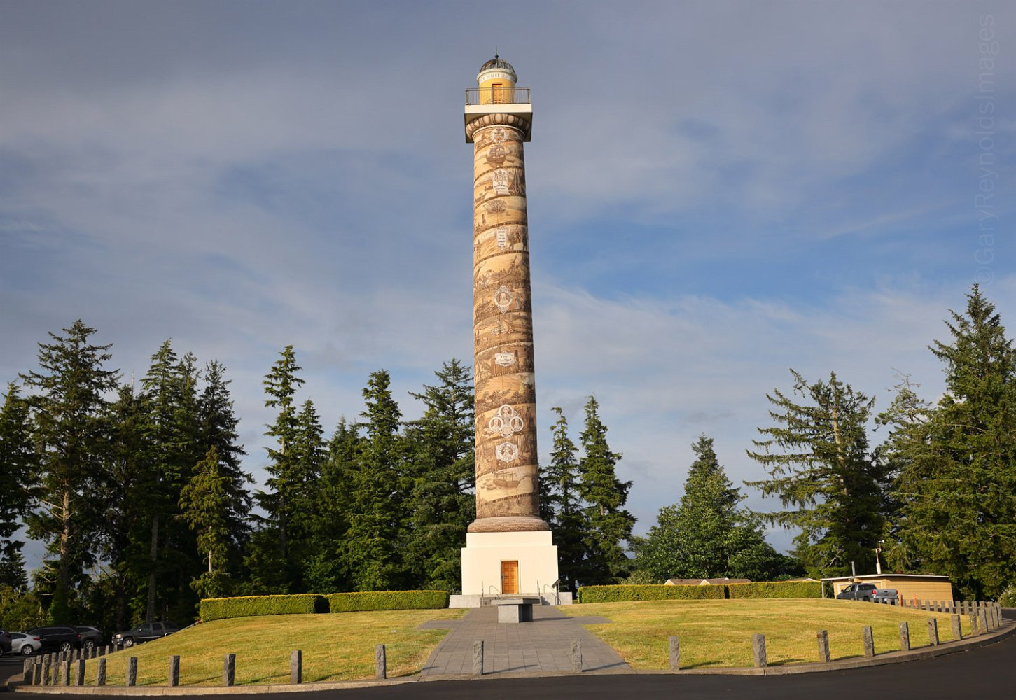 Just three minutes up the hill, evening views of and from the Astoria Column were very impressive.