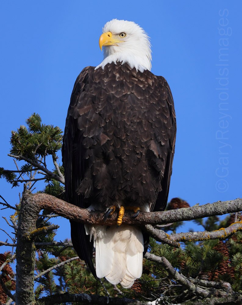 Bald eagle on an exceptionally bright winter day on San Juan Island, WA.