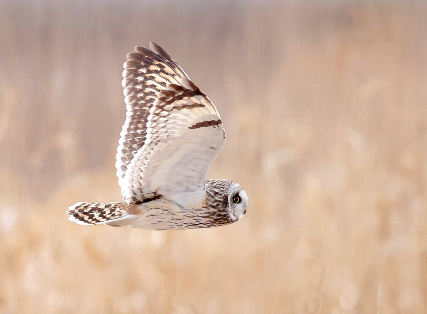 Short-eared owl, always patroling the fields just above the ground.
