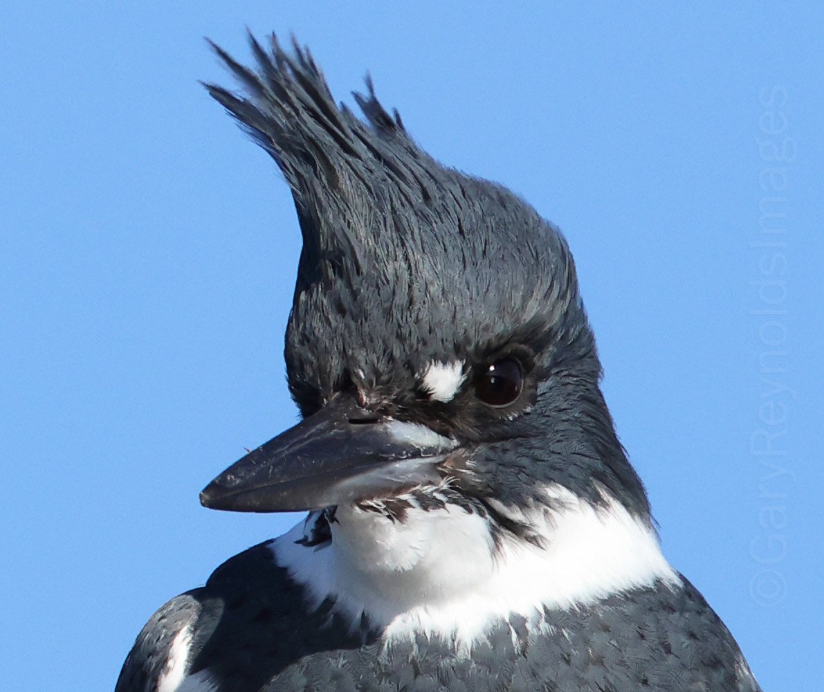 Belted Kingfisher on a windy Valentine's Day afternoon.