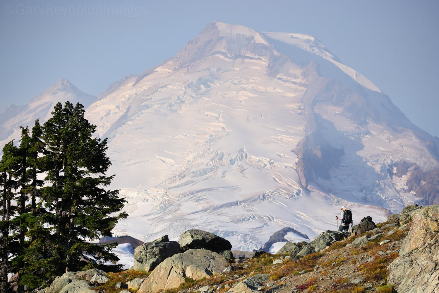 Using telephoto optics to draw Mount Baker in toward Yvonne.