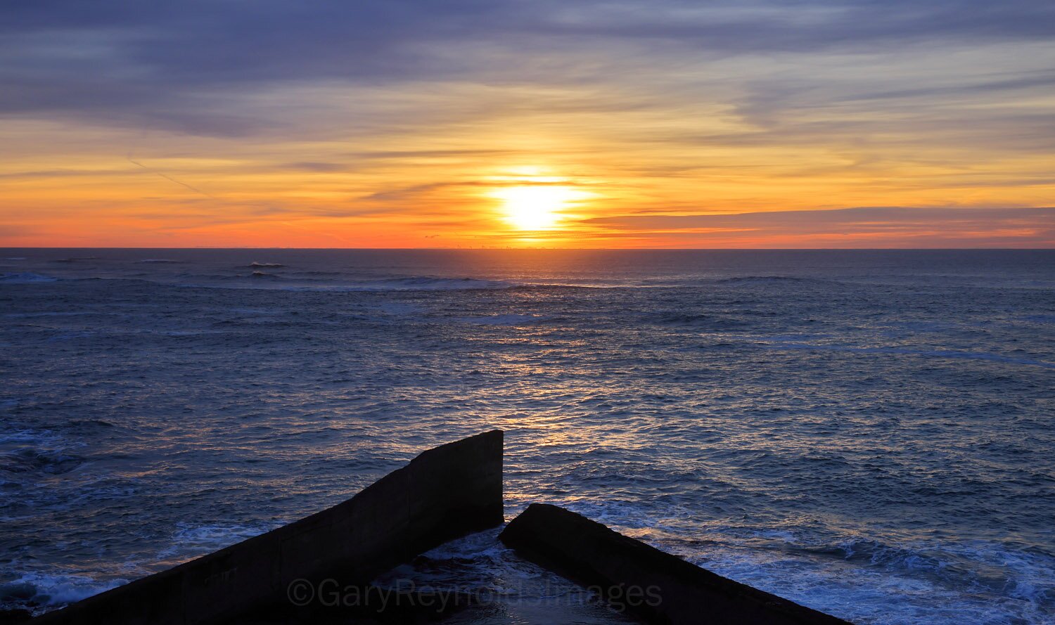 Not even 4:30, sunset off the Depoe Bay breakwater...